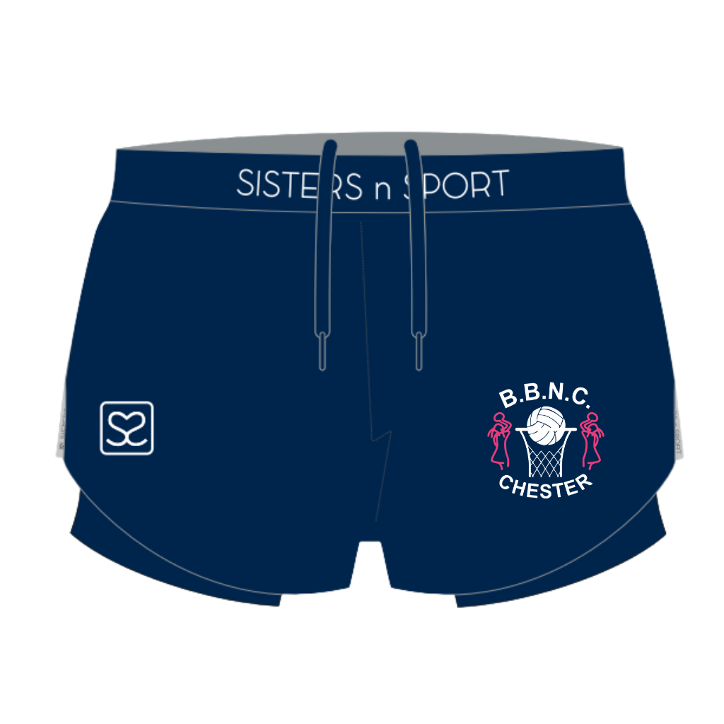 Boughton Belles Netball Club 2 in 1 Shorts – Designed and printed by Sisters n Sport in Cheshire.