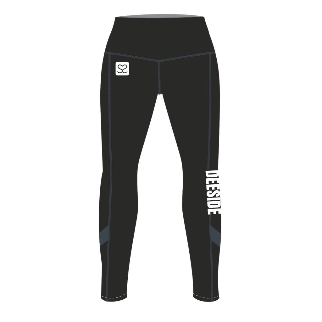 This DEESIDE Netball Club Performance Legging is printed with the DEESIDE down the leg in silver.