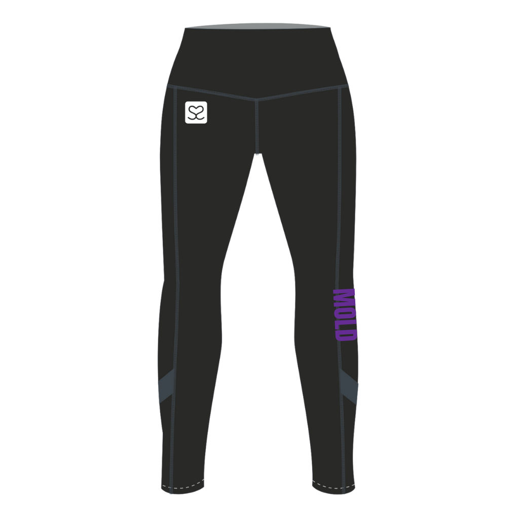 This Mold Netball Club Performance Legging is printed with the MOLD down the leg in silver.