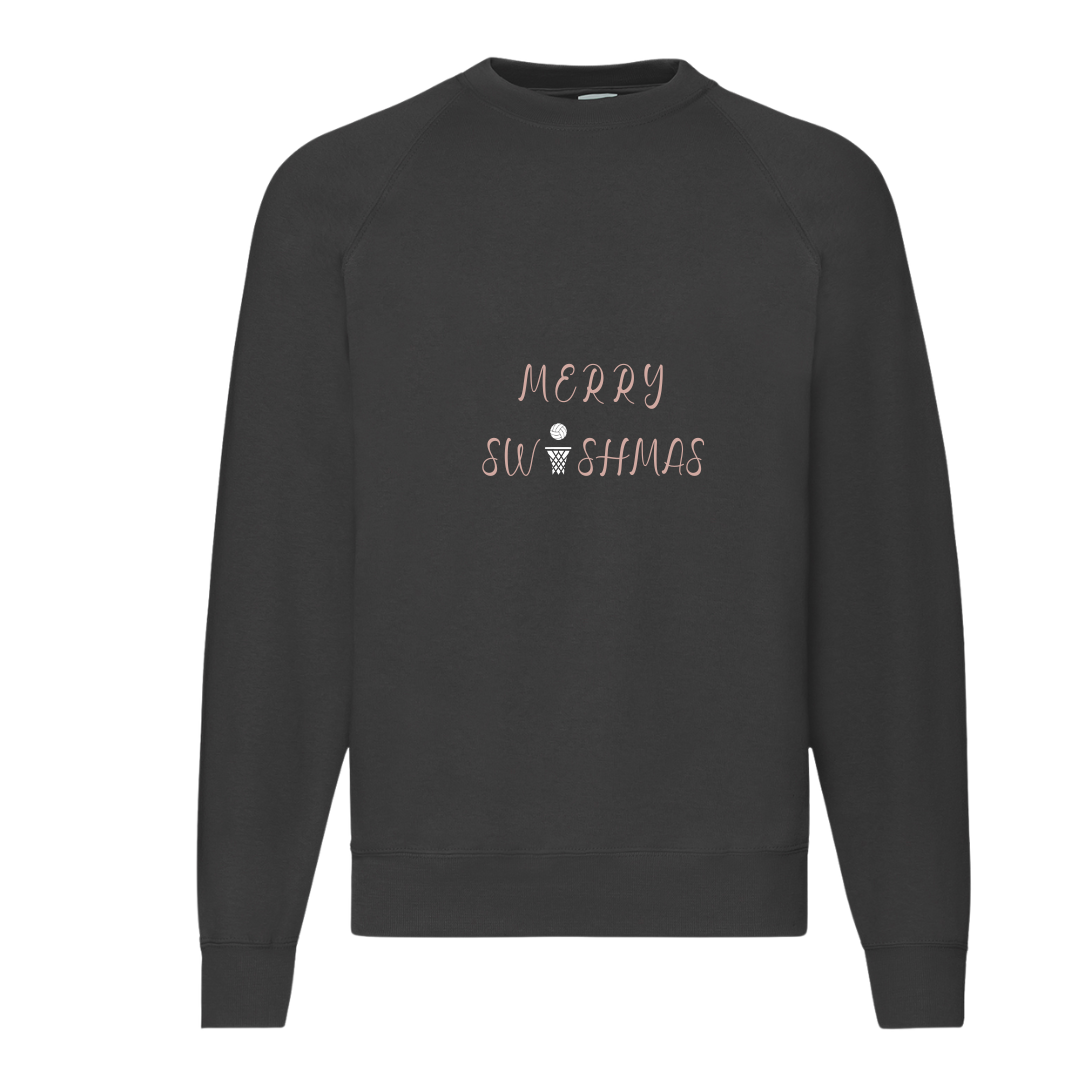 Black Sweatshirt printed with Merry Swishmas