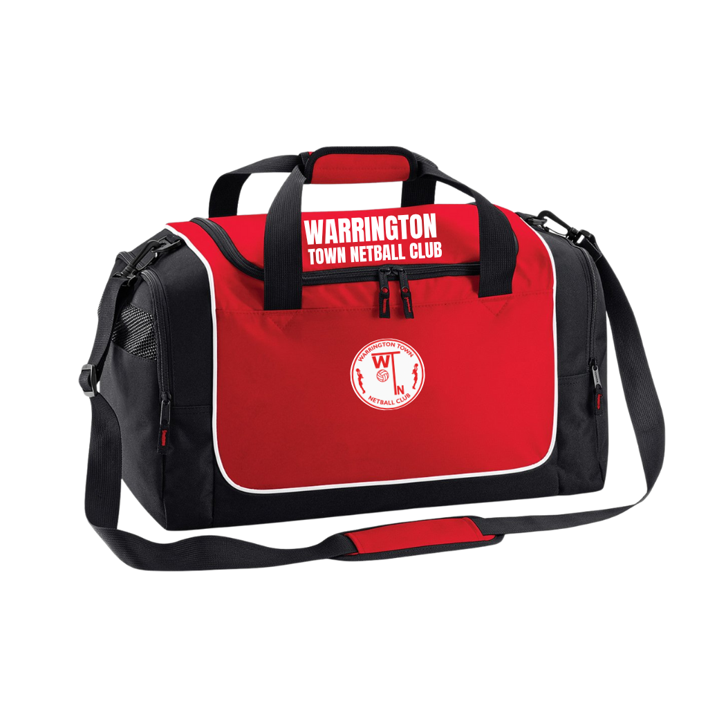 Player Holdall is printed with Warrington Town Junior Netball Club Logo